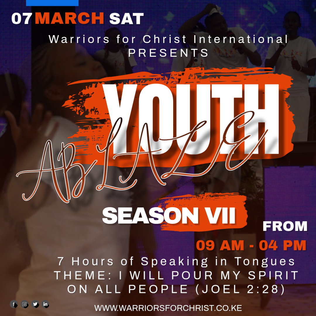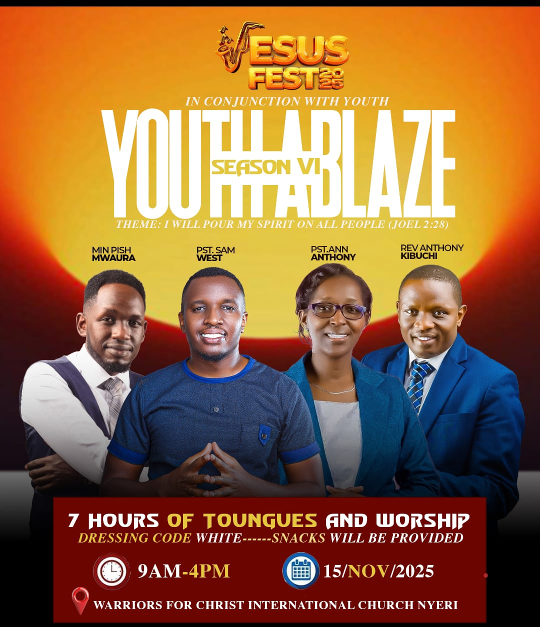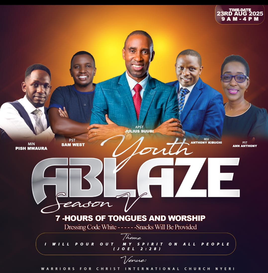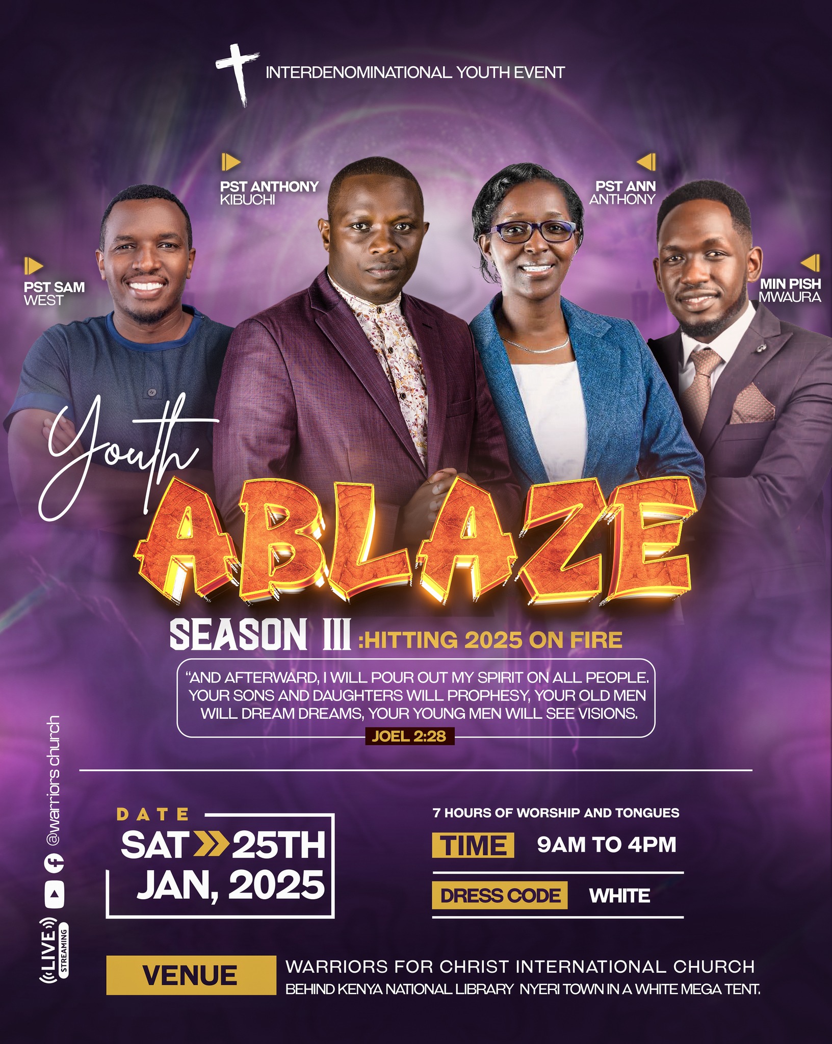 Welcome to Youth Ablaze Season 5 – a life-changing youth revival gathering hosted by Warriors for Christ International, Nyeri.For 7 powerful hours, we will lift our voices in speaking...